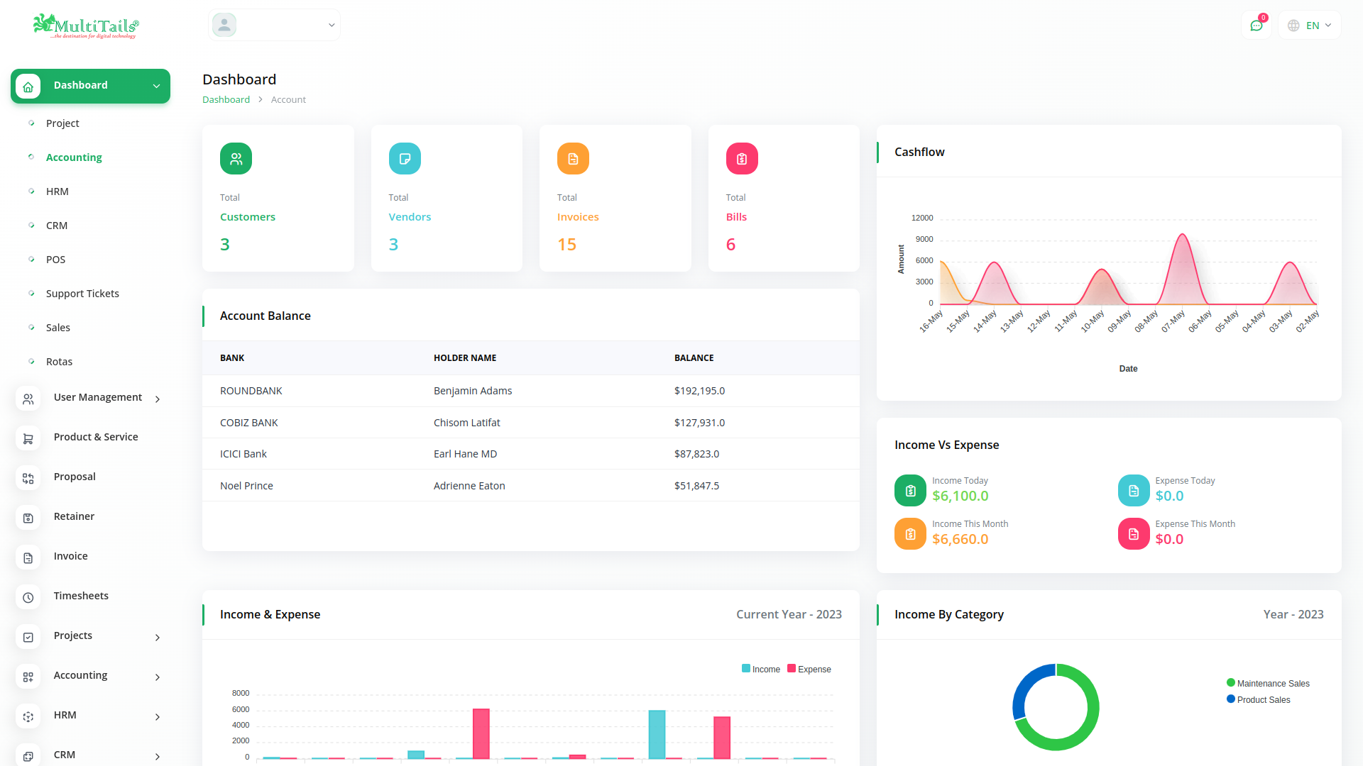 Create sales targets and keep track of their progress in your dashboard. Use the expense list to cut down on unnecessary expenses, and put more resources into reaching your sales targets.